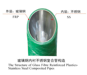 不锈钢内衬玻璃钢复合管是以薄壁不锈钢管为内衬层,外层由无碱无捻玻璃纤维纱和不饱和聚酯树脂(环氧树脂)经机械网状缠绕固化复合而成的。